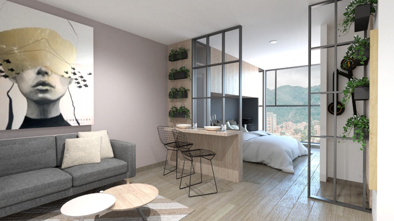 Los planos de ventas y vistas publicitarias del proyecto, incluyendo plantas generales, plantas de apartamentos, zonas comunes, especificaciones, acabados y demás son representaciones gráficas y por lo tanto se pueden presentar variaciones en diseño, tamaños, materiales, colores, texturas, etc. | Las áreas aquí mencionadas corresponden al área construida y no al área privada, las cuales quedarán determinadas en los contratos suscritos por las partes. Adicionalmente, los elementos decorativos no constituyen oferta de amoblamiento o dotación de zonas comunes ni privadas | En todo caso, el proyecto, las áreas, especificaciones y dimensiones definitivas, serán aprobadas por la autoridad administrativa competente de acuerdo con la respectiva licencia de construcción | La gestión a desarrollar por la sociedad fiduciaria es un encargo fiduciario de preventas.